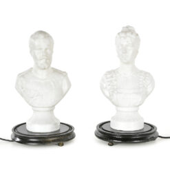 Paire de bustes publicitaires en opaline – Bonbons John Tavernier transformés en lampes d’appoint