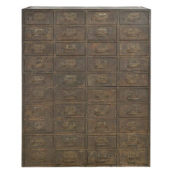 Meuble de rangement industriel en métal patiné à 40 tiroirs (127 x 103 x 51cm)