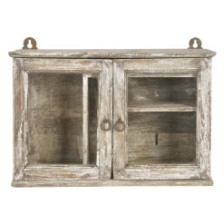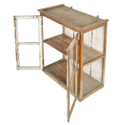 Petite vitrine murale en bois patiné (59 x 43 x 13cm)