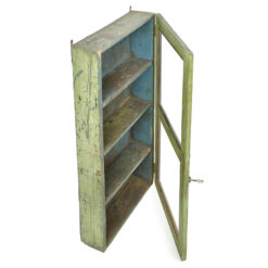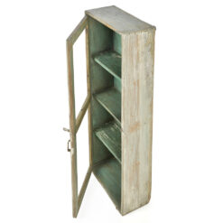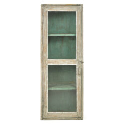 Vitrine murale ancienne en bois massif à patine verte (119 x 60 x 18cm)