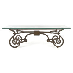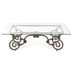 Table basse en fonte sculptée et plateau en verre (44 x 134 x 73cm)