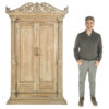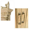 Conception : Deux battants encadrés par une structure complète avec base et fronton sculpté. Colonnes torsadées de chaque côté, chapiteaux et corniche haute décorée d’une frise ajourée à motifs végétaux. Poignées en métal anciennes conservées.