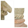 Avec leur élégante patine bleu-vert, leur fût en bois sculpté et leur socle en pierre, ces quatre colonnes anciennes séduisent par leur prestance et leur caractère. Riches en détails, elles rappellent les décors fastueux des architectures indo-européennes ou coloniales. Caractéristiques principales : Matériaux : Fût en bois massif ancien, sculpté à la main. Socle en pierre taillée d’origine, apportant stabilité et authenticité à l’ensemble. Patine dans des tons céladon, bleu délavé et ocre, avec traces d’usure naturelle qui confèrent tout leur charme aux pièces. Décor : Cannelures verticales sur toute la hauteur du fût, frises florales sculptées, motifs feuillagés et volutes sur les chapiteaux. Chaque colonne se distingue par une richesse décorative qui évoque un art architectural raffiné. Dimensions : Hauteur : 223 cm - Diamètre : 33 cm État : Usures, légers éclats et fissures liés à l’âge, notamment sur certaines frises et parties inférieures du bois. Patine d’origine préservée. Stabilité assurée grâce aux bases en pierre. Un décor architectural chargé d’histoire Parfait pour : - Structurer une entrée, une galerie, un patio ou une verrière. - Créer un point focal fort dans un restaurant, une boutique ou un espace de réception. - Être intégrées dans une scénographie historique, événementielle ou cinématographique. - Servir de support pour des rideaux, des arches florales ou des installations artistiques. Ces colonnes conjuguent la noblesse de la pierre, la chaleur du bois sculpté et l’élégance d’un savoir-faire ancien. Une série unique, idéale pour donner du souffle et de la verticalité à tout projet décoratif. Retrait en magasin gratuit. Pour toutes livraisons, contactez-nous par téléphone ou mail pour un devis personnalisé.
