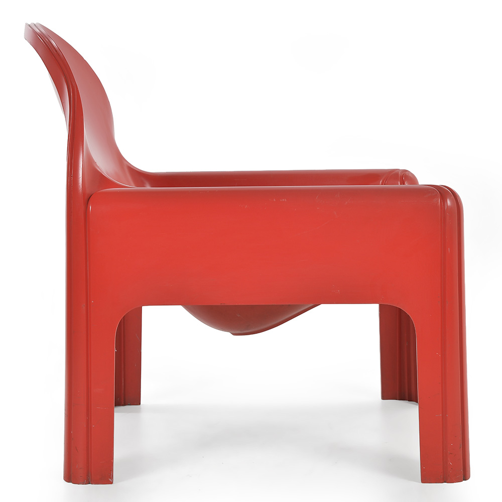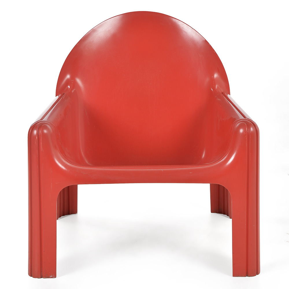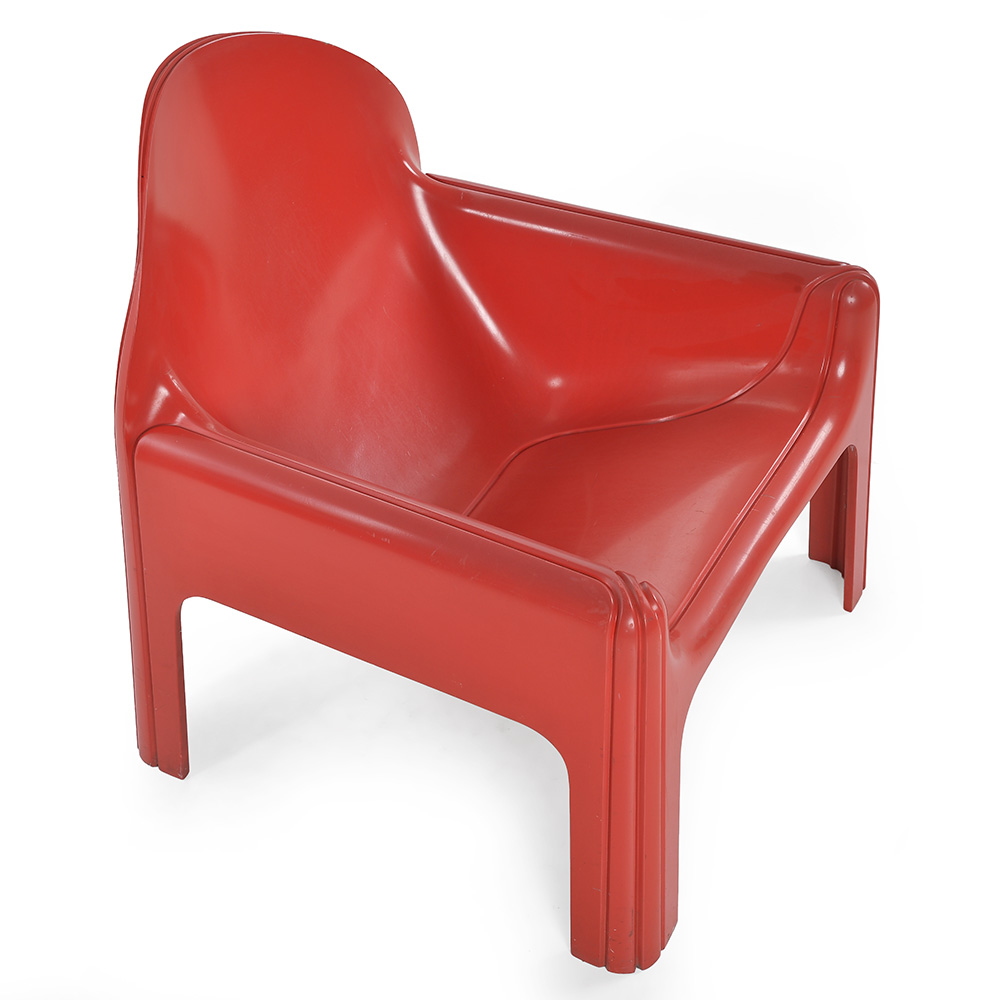 Icônes du design italien des années 1970, ces trois fauteuils rouges signés Gae Aulenti pour Kartell incarnent à la perfection l’audace formelle et l’innovation matérielle propres au design du XXᵉ siècle. Leur silhouette enveloppante, immédiatement reconnaissable, conjugue confort, modernité et une présence sculpturale forte.