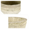 - Matériau et finition : Ciment brut, vieilli naturellement. Stries horizontales formant un motif discret et rythmique sur tout le pourtour.