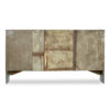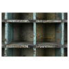 - Matériau et finition : Bois massif avec fond en zinc, patine bleu-vert usée et marques du temps apportant un charme brut et industriel.