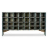 Ce meuble d’atelier en bois massif séduit par la force de son caractère et la singularité de son design utilitaire. Composé de 32 cases à fond en zinc, il conserve une patine bleu passé qui témoigne de décennies d’usage, évoquant les ateliers et manufactures d’antan.
