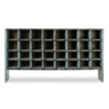 Ce meuble d’atelier en bois massif séduit par la force de son caractère et la singularité de son design utilitaire. Composé de 32 cases à fond en zinc, il conserve une patine bleu passé qui témoigne de décennies d’usage, évoquant les ateliers et manufactures d’antan. Caractéristiques principales : - Matériau et finition : Bois massif avec fond en zinc, patine bleu-vert usée et marques du temps apportant un charme brut et industriel. - Conception : Structure rectangulaire à 32 compartiments, chiffres et inscriptions peints d’origine en bordure des cases. - Dimensions : Hauteur 68 cm – Largeur 125 cm – Profondeur 20 cm. Un meuble fonctionnel et décoratif Parfait pour : - Structurer un espace de travail ou une boutique au style vintage ou industriel. - Ranger des outils, accessoires ou objets de collection. - Être détourné en meuble d’entrée, bibliothèque murale ou présentoir décoratif. Cette pièce unique illustre la robustesse et le pragmatisme du mobilier d’atelier du XXᵉ siècle, tout en offrant une esthétique intemporelle. Retrait en magasin gratuit. Pour toutes livraisons, contactez-nous par téléphone ou mail pour un devis personnalisé.