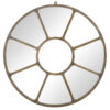 Réalisé en métal patiné, ce miroir présente une finition brute, marquée par une teinte brun vieilli et quelques traces d’oxydation qui accentuent son caractère authentique. Le cadre circulaire est structuré en huit compartiments en verre miroir, disposés autour d’un oculus central ajouré. L’ensemble évoque la géométrie des grandes verrières ou des mécanismes anciens.