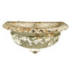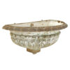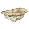Fabriquées en fonte ancienne, ces vasques présentent une patine naturellement écaillée, mêlant les tons crème, vert olive et rouille. Leurs reliefs sculptés en godrons et frises arrondies rappellent l’élégance des ornements classiques.