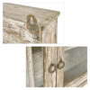 - Conception : Deux portes vitrées à battants, maintenues par de petites charnières d’origine et fermées par des poignées en anneaux. Intérieur compartimenté avec une étagère supérieure en deux sections et un grand compartiment vertical à gauche.