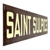 Typographie : Lettrage typique des plaques de gare ou de rue, très lisible et contrasté. L’inscription « SAINT SULPICE » s’étale sur toute la longueur, imprimée en beige crème sur un fond émaillé bordeaux profond.
