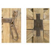 - Matériau et finition : Bois massif à la patine naturelle, nuances de miel et de beige avec usures marquant le temps. Renforts et crochets en fer forgé d’origine.
