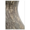 Le bois ancien, patiné naturellement, présente une texture riche en craquelures, stries et veinures, révélant la main du temps. Sa teinte gris-brun, ponctuée de nuances plus claires et plus sombres, évoque une matière vivante et façonnée par l’usage.