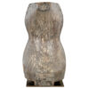 Le bois ancien, patiné naturellement, présente une texture riche en craquelures, stries et veinures, révélant la main du temps. Sa teinte gris-brun, ponctuée de nuances plus claires et plus sombres, évoque une matière vivante et façonnée par l’usage.