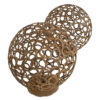 Réalisée à la main par un artisan ferronnier, cette sphère imposante est constituée d’un enchevêtrement de fers à cheval soudés entre eux. Sa structure ajourée et circulaire donne à l’ensemble une présence sculpturale tout en conservant une remarquable légèreté visuelle. Caractéristiques principales : - Matériaux : Fers à cheval anciens, patinés naturellement par le temps, assemblés à la main. L’oxydation partielle confère à la surface des nuances chaleureuses de brun rouillé, propres au métal travaillé avec authenticité. - Structure : Chaque sphère repose sur un socle métallique circulaire discret assurant sa stabilité. L’ajouré du réseau métallique crée un jeu d’ombres captivant, particulièrement efficace en extérieur ou sous un éclairage rasant. - Dimensions : 102 cm de hauteur, 97 cm de diamètre. Des dimensions généreuses qui permettent une mise en valeur en tant qu’élément central de jardin, de terrasse ou d’espace intérieur de caractère. - Finition : Métal brut laissé volontairement dans son état patiné, sans traitement moderne, garantissant une esthétique brute, organique et sincèrement artisanale. Sculpture contemporaine au charme équin et industriel Parfaite pour : - Structurer une allée, une cour ou un jardin paysagé avec des pièces d’exception aux formes géométriques et symboliques. - Habiller une grande pièce intérieure, un atelier, un showroom ou un espace d’accueil avec force et élégance. - Apporter une touche de singularité à un lieu mêlant matériaux bruts, art équestre ou univers industriel. Une création spectaculaire, à la croisée de la tradition artisanale et de la sculpture contemporaine, signée par la main d’un passionné du fer et du geste. Retrait en magasin gratuit. Pour toutes livraisons, contactez-nous par téléphone ou mail pour un devis personnalisé.