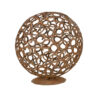 Réalisée à la main par un artisan ferronnier, cette sphère imposante est constituée d’un enchevêtrement de fers à cheval soudés entre eux. Sa structure ajourée et circulaire donne à l’ensemble une présence sculpturale tout en conservant une remarquable légèreté visuelle. Caractéristiques principales : - Matériaux : Fers à cheval anciens, patinés naturellement par le temps, assemblés à la main. L’oxydation partielle confère à la surface des nuances chaleureuses de brun rouillé, propres au métal travaillé avec authenticité. - Structure : Chaque sphère repose sur un socle métallique circulaire discret assurant sa stabilité. L’ajouré du réseau métallique crée un jeu d’ombres captivant, particulièrement efficace en extérieur ou sous un éclairage rasant. - Dimensions : 102 cm de hauteur, 97 cm de diamètre. Des dimensions généreuses qui permettent une mise en valeur en tant qu’élément central de jardin, de terrasse ou d’espace intérieur de caractère. - Finition : Métal brut laissé volontairement dans son état patiné, sans traitement moderne, garantissant une esthétique brute, organique et sincèrement artisanale. Sculpture contemporaine au charme équin et industriel Parfaite pour : - Structurer une allée, une cour ou un jardin paysagé avec des pièces d’exception aux formes géométriques et symboliques. - Habiller une grande pièce intérieure, un atelier, un showroom ou un espace d’accueil avec force et élégance. - Apporter une touche de singularité à un lieu mêlant matériaux bruts, art équestre ou univers industriel. Une création spectaculaire, à la croisée de la tradition artisanale et de la sculpture contemporaine, signée par la main d’un passionné du fer et du geste. Retrait en magasin gratuit. Pour toutes livraisons, contactez-nous par téléphone ou mail pour un devis personnalisé.
