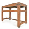 - Structure : Petit modèle à quatre pieds, avec un plateau aux bords francs et une silhouette compacte. Le bois présente des irrégularités, marques d’un travail artisanal et d’un usage passé.