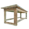 - Conception : Plateau composé de larges planches épaisses légèrement irrégulières, reposant sur une structure solide et équilibrée. Piètement renforcé par des traverses en H, gage de stabilité et de durabilité.