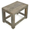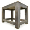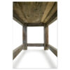 Sa structure massive repose sur quatre pieds droits reliés par des traverses renforçant sa stabilité. Le plateau épais, légèrement irrégulier, est constitué de planches assemblées avec soin, offrant une surface à la fois fonctionnelle et pleine de caractère. Sa hauteur permet de l’utiliser aussi bien en table basse qu’en support de présentation dans une boutique ou un intérieur de style industriel.