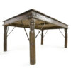 - Matériau et finition : Structure en bois massif patiné, consolidée par des renforts en métal noirci. L’ensemble présente une surface aux nuances chaudes, marquée par le temps et les usages, qui confère un charme brut et authentique.