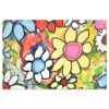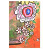 - Composition : Un grand vase brun accueille une profusion de fleurs stylisées : marguerites éclatantes, fleurs en rosaces, corolles vives aux tonalités bleu clair, jaune solaire, rouge coquelicot, rose framboise… L’ensemble se détache avec fraîcheur sur un fond orange saturé, texturé et vibrant.