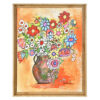 Un souffle de vitalité et de poésie se dégage de ce tableau signé Olivier Cohen. Sur un fond orange lumineux, l’artiste compose un bouquet foisonnant aux accents naïfs et colorés, dans une mise en scène à la fois joyeuse et spontanée. Chaque fleur semble s’épanouir librement, comme suspendue dans un moment d’allégresse.