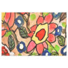 - Composition : Un vase trapu aux nuances de terre cuite accueille une abondance de fleurs stylisées : corolles blanches, rouges, bleu outremer, feuillages vert amande... Chaque élément est cerné de noir, dans une esthétique proche du vitrail.